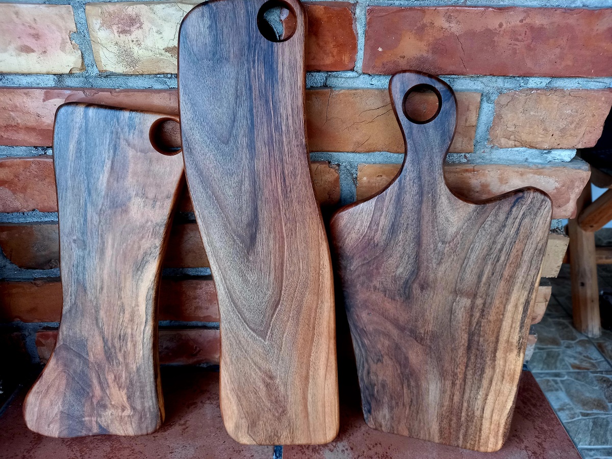 - Prirodna zaštita: Površina dasaka je tretirana lešnikovim uljem i pčelinjim voskom, koje nabavljamo od lokalnih poljoprivrednih gazdinstava. Ovo ne samo da produžava vek trajanja, već ih čini potpuno bezbednim za kontakt sa hranom.
