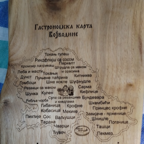 - Gastronomska karta Vojvodine: Naglašava specifične specijalitete i tradiciju vojvođanskog podneblja, savršeno za promociju regionalne gastronomije.