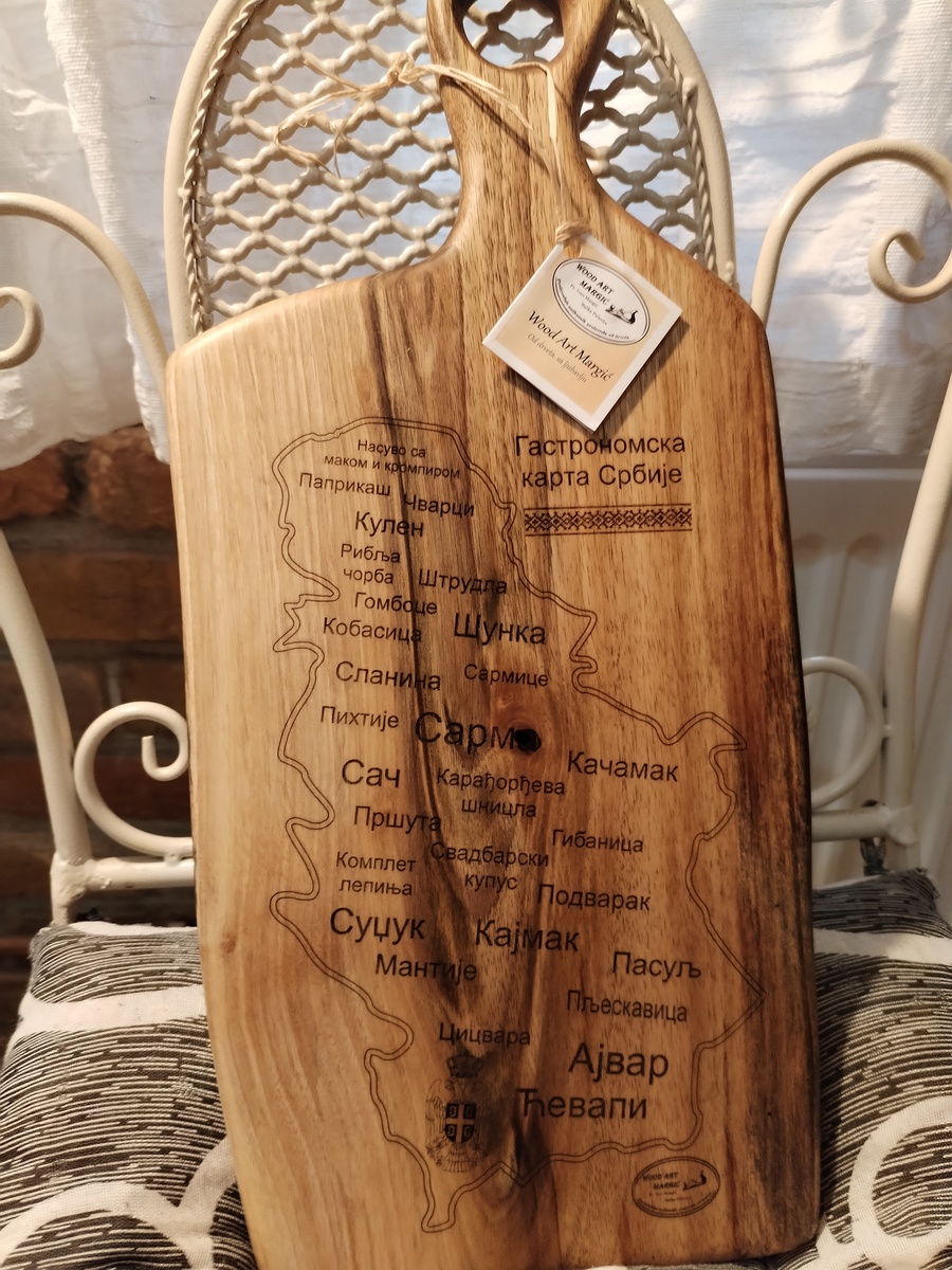 - Gastronomska karta Srbije: Prikazuje bogatu kulinarsku tradiciju naše zemlje, idealno za ljutitelje domaće kuhinje, kao i za poklon za inostrane goste.