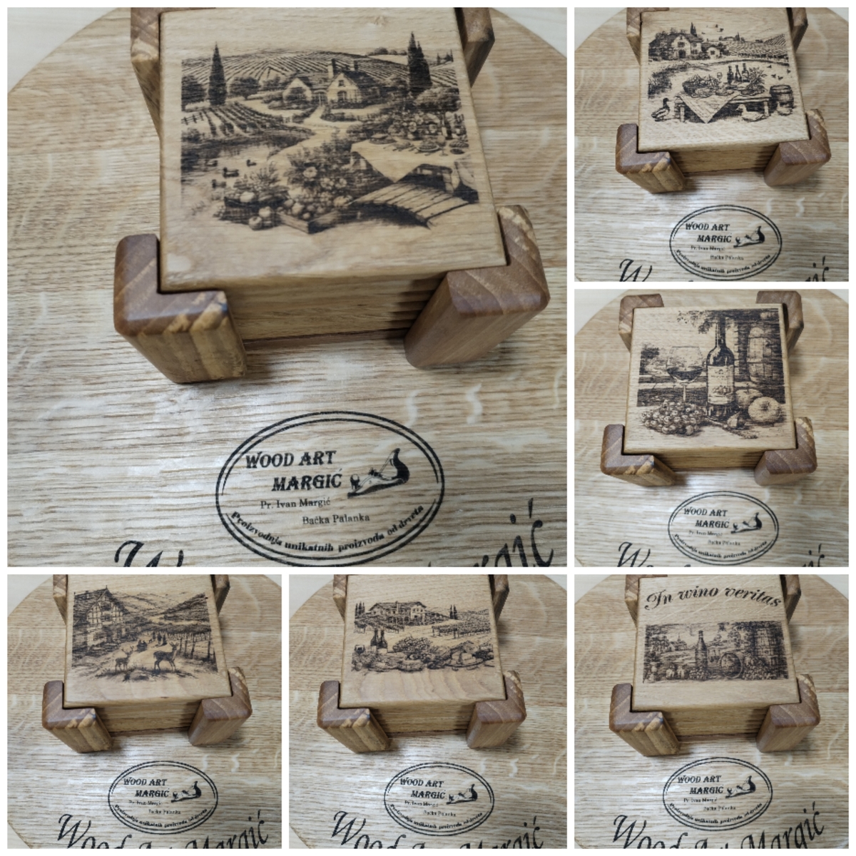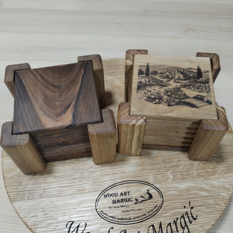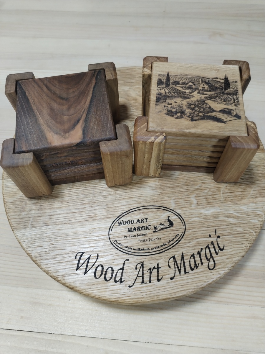 Naši drveni podmetači za čaše izrađeni su od najkvalitetnijih vrsta tvrdog drveta - hrasta, oraha i divlje trešnje, pružajući spoj prirodne lepote i dugotrajnosti. Dizajnirani da budu funkcionalni, a istovremeno estetski privlačni, ovi podmetači su savršen dodatak za svaki dom, restoran, bar ili poslovni prostor.