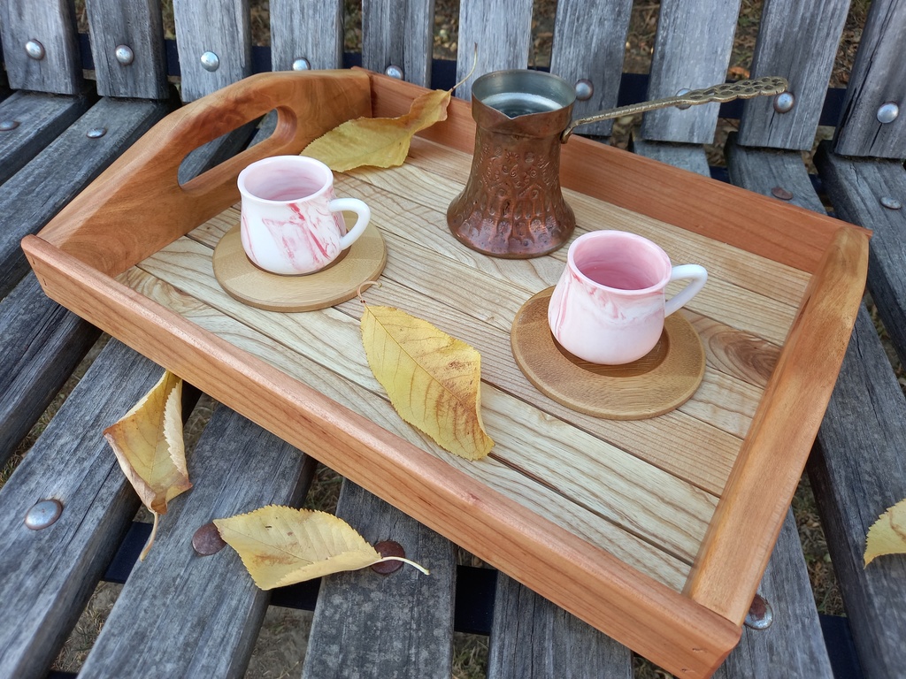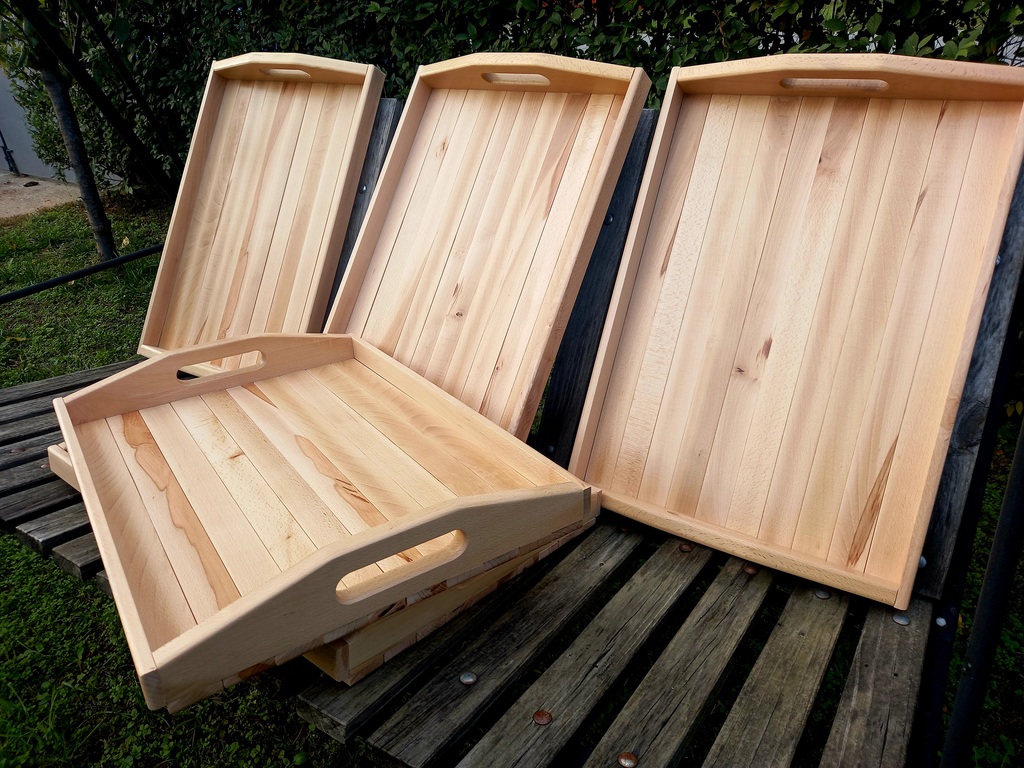Ovi prelepi poslužavnici izrađuju se od drveta iz jednog komada. Izrađuju se od oraha, hrasta i trešnje.